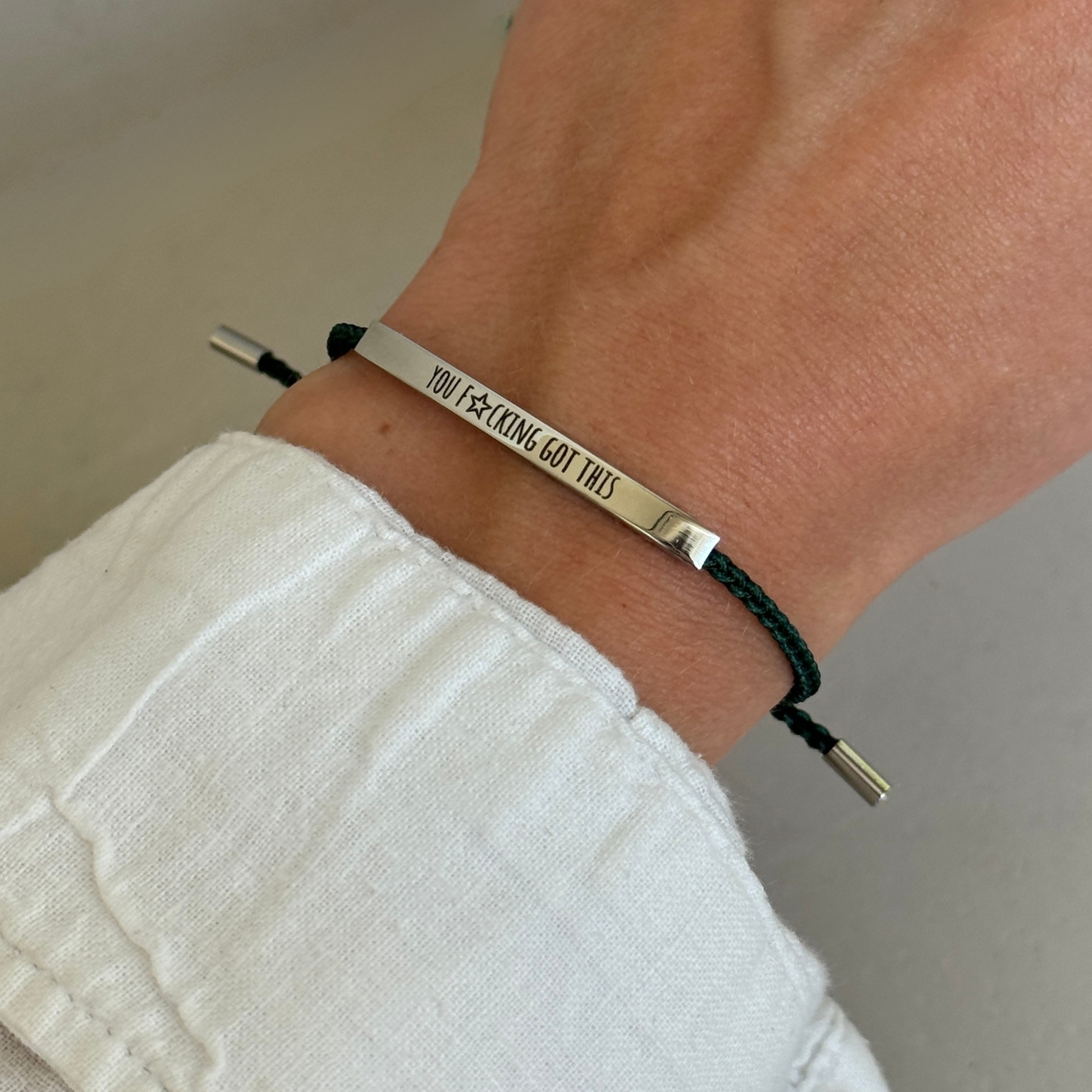 Bold, empowering, and unapologetically real—this bracelet is your daily confidence boost. Engraved with “You F*cking Got This” it’s the perfect reminder that you are capable of handling whatever comes your way.